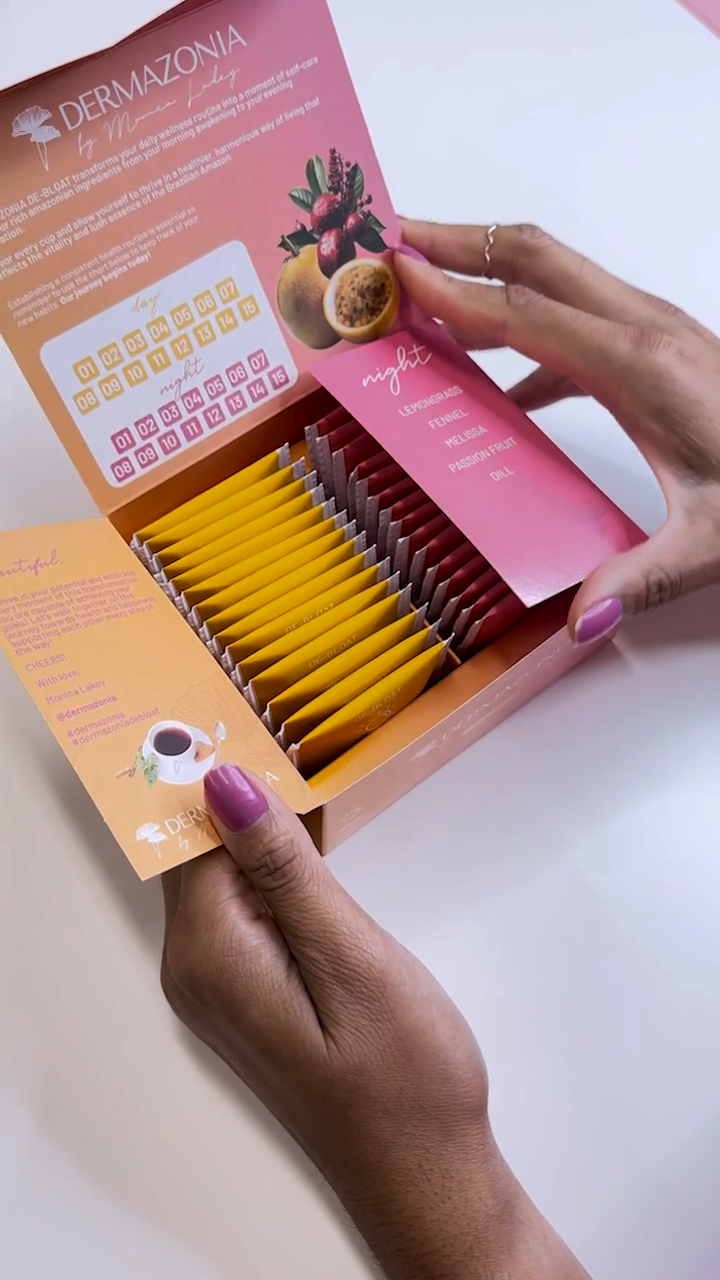 Dermazonia De-bloat transforms your daily wellness journey into a luxurious moment of self-care. Infused with rich Amazonian ingredients, it takes you from morning energy to evening relaxation.